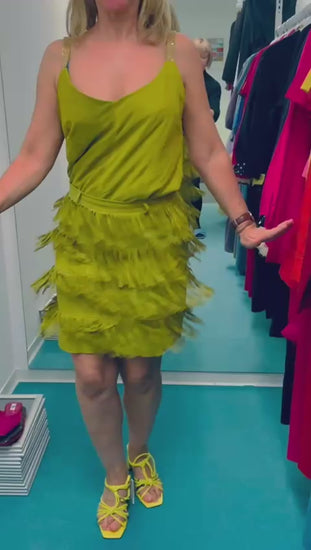 Leather skirt with fringes in yellow