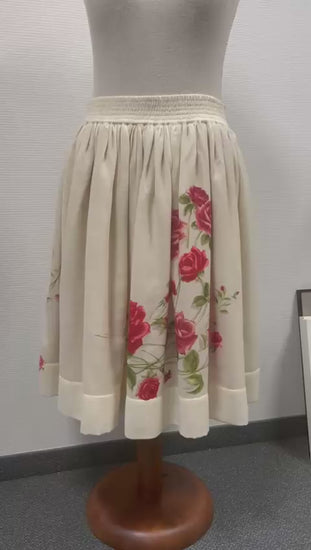 Skirt in wool with flowers. Elasticated, lined
