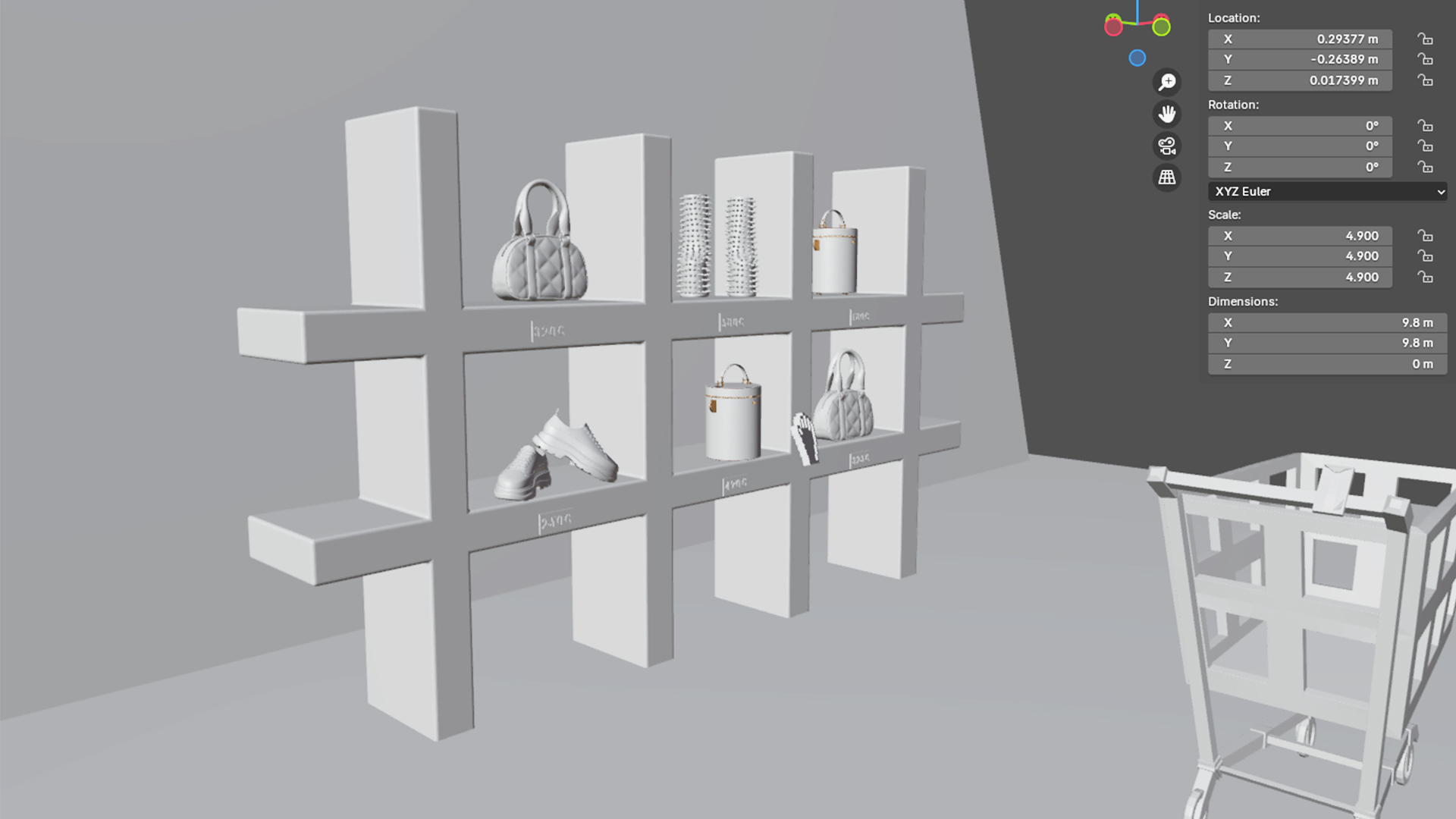 Die Handtaschen wurden in CLO3D auf Basis realer technischer Schnitte modelliert. Szene, Animation und alle weiteren Objekte entstanden in Blender. Um eine spielerische, leichte Stimmung zu erzeugen, wurden bewusst stilisierte, plastilinartige Materialien statt Fotorealismus eingesetzt.